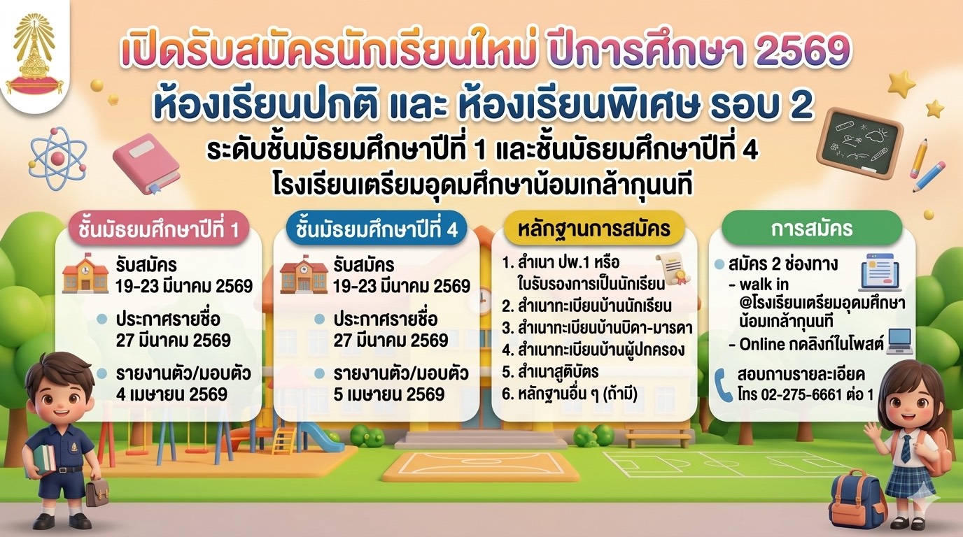 ประกาศรายชื่อนักเรียนชั้นมัธยมศึกษาปีที่ 3 ที่มีคุณสมบัติครบตามแผนการเรียน เข้าศึกษาต่อระดับชั้นมัธยมศึกษาปีที่ 4